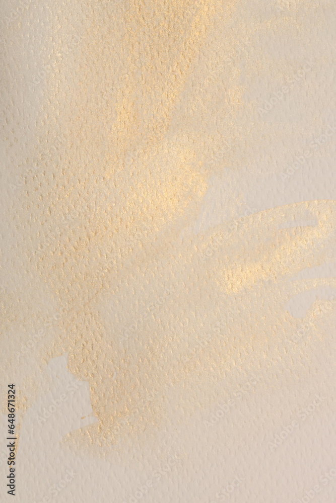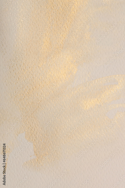 Ink and watercolor smoke flow stain blot on paper grain texture background. Beige nacre gold pastel color.