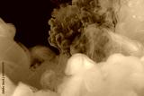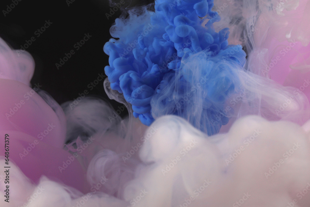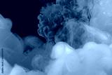 Abstract smoke background. Ink colors blot in water. Blue, white on black.