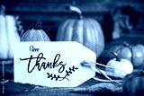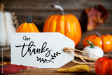 Orange Pumpkin Decoration With Label With Text Give Thanks