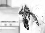 fresh lobster at the seafood market, hand chef holding fresh lobster, with copy space