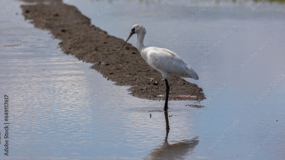 Black-faced Spoonbill (Platalea minor) standing paddy filed at Kota Belud, Sabah, Borneo