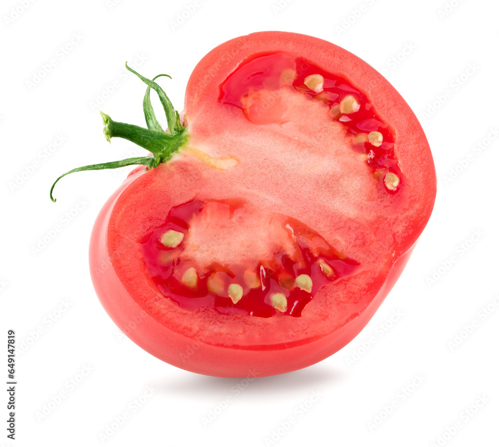 half of fresh pink tomato isolated on white background. clipping path