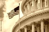 Washington DC Capitol dome detail with waving american flag