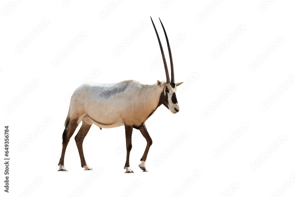 Isolated oryx over white or transparent background, animal of the desert of the Middle East.