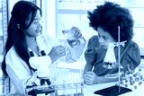 School children doing science experiments in school lab, children experimenting with mixing chemicals, learning experiments, scientists in laboratory, children's chemistry experiment in school lab.