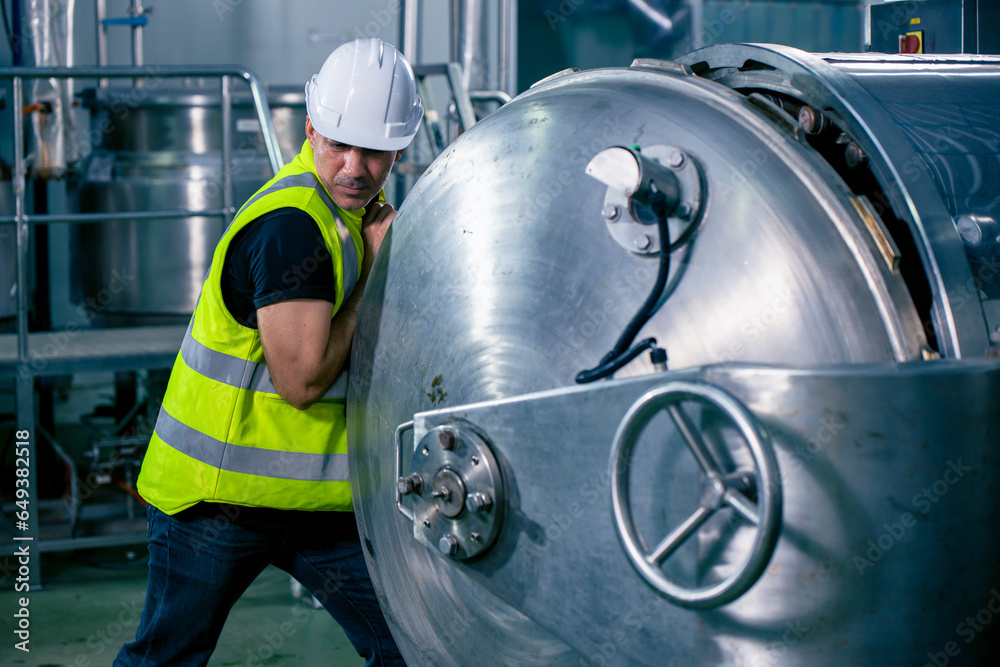 Technician engineer male worker working in boiler room gas pipe checking service routine in industry factory