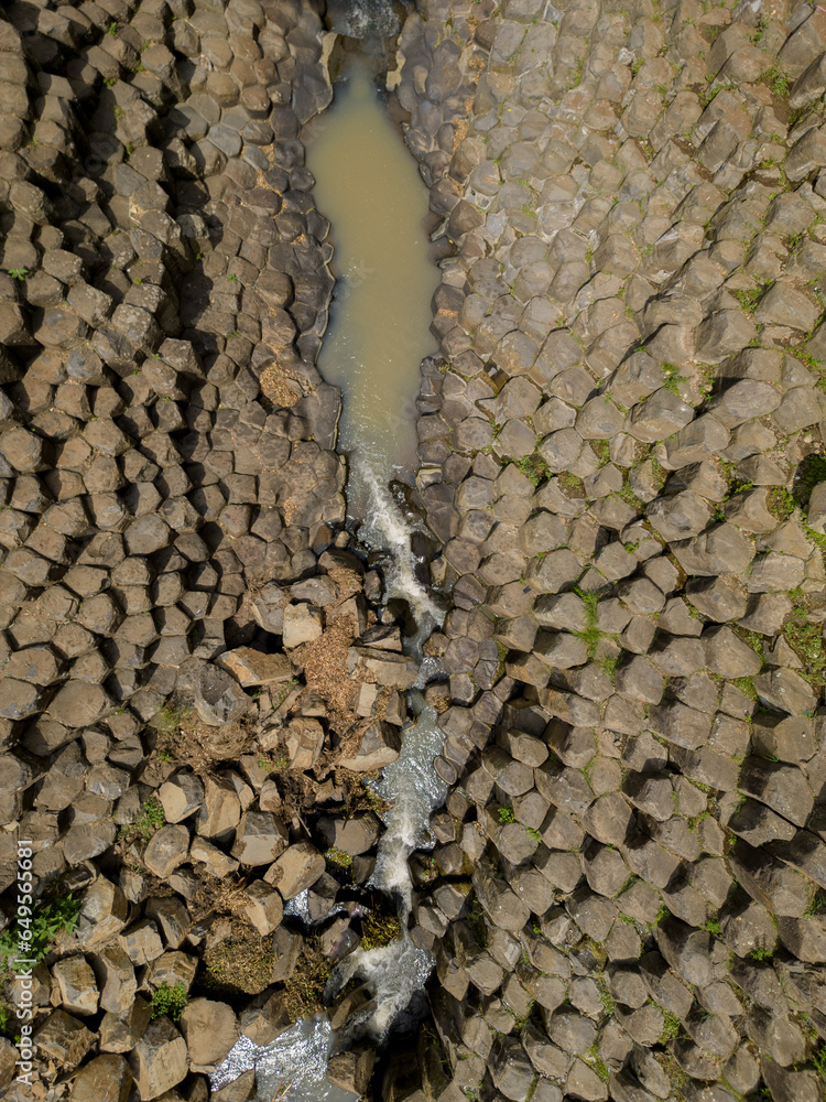 Basaltic prisms in Huasca de Ocampo. Ecotourism concept. Geological formations.