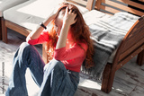Sad depressed young adult woman crying alone at home, upset