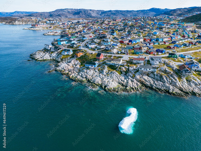 Greenland Ilulissat Icefjord Aerial View. Iceberg and glacier ice in Arctic nature landscape in Greenland. Ilulissat, Disko Bay, Baffin Sea, Greenland.
