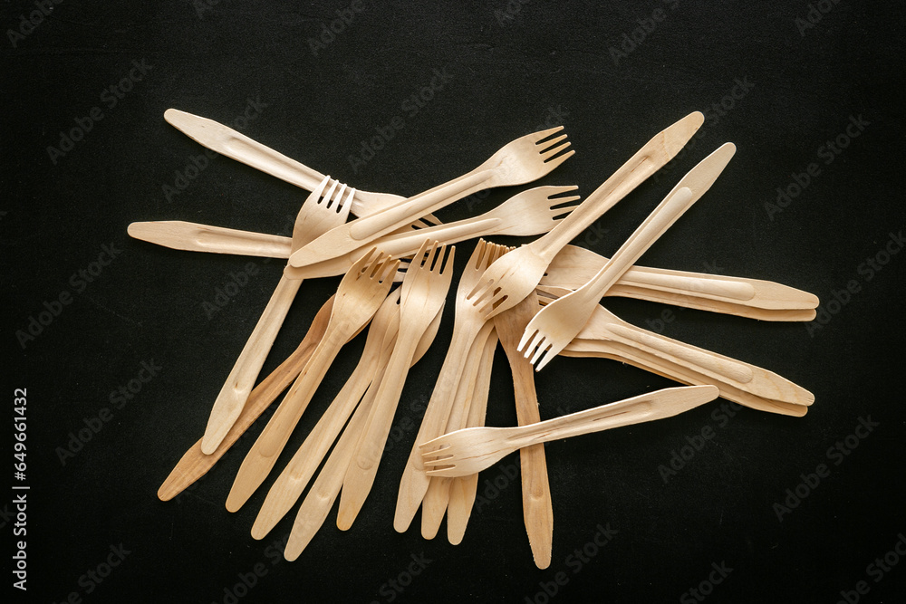 Pattern of wooden eco friendly disposable forks. Zero waste concept