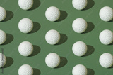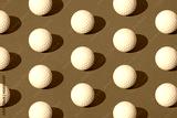White golf ball on a green pastel background. Pattern.