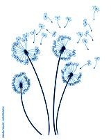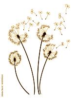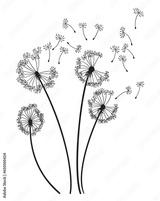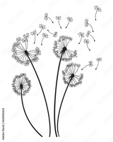Dandelion wind blow background. Black silhouette with flying dandelion buds on white. Abstract flying seeds. Decorative graphics for printing. Floral scene design