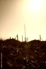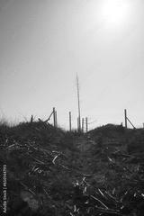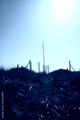 Abgestorbene Bäume im Harz. Blauer Himmel ohne Wolken. Totholz