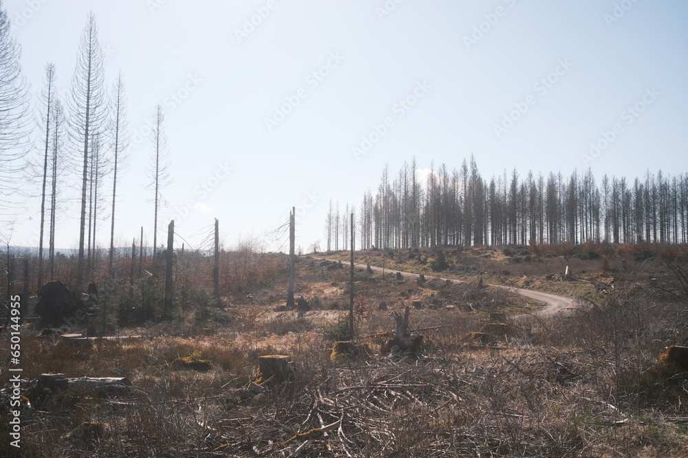 Totes Holz im Harz. Kahle Wälder und Wanderwege