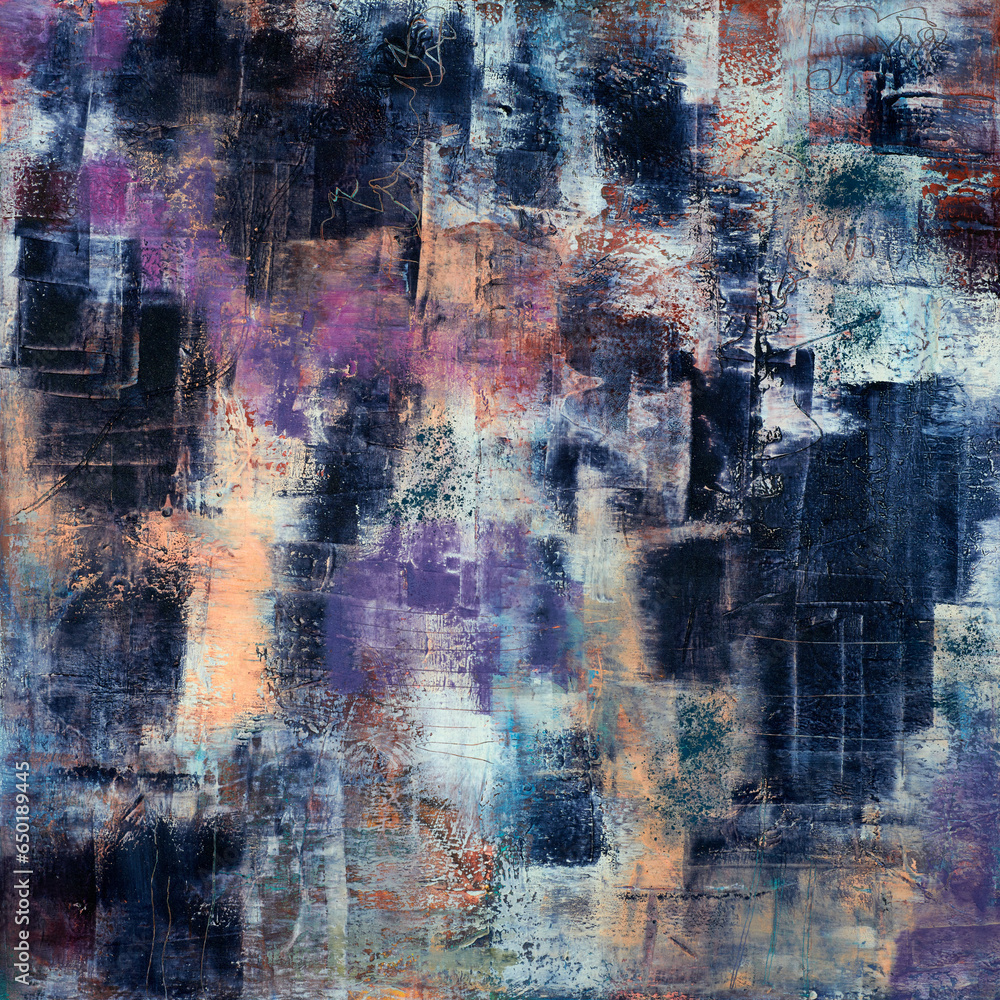 Oil paint drawing. Abstract colored background. Abstraction in the style of impressionism. Modern surrealist painting. Good as a poster for wall decor. Surreal design. Hand drawn texture template.