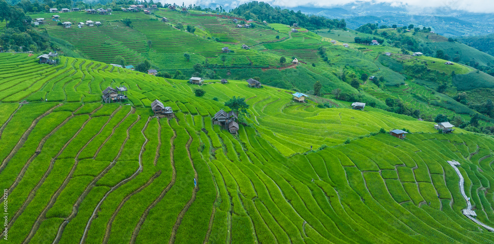 landscape for background of rice terraces field at Ban Pa Bong Piang Chiang Mai Province, Northern of Thailand, aerial view.