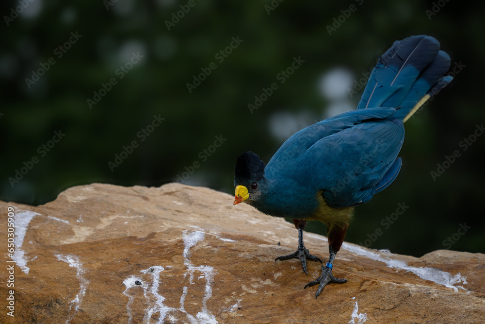 Great Blue Turaco - Corythaeola cristata, beautiful large colored bird from African woodlands and forests, Entebbe, Uganda.