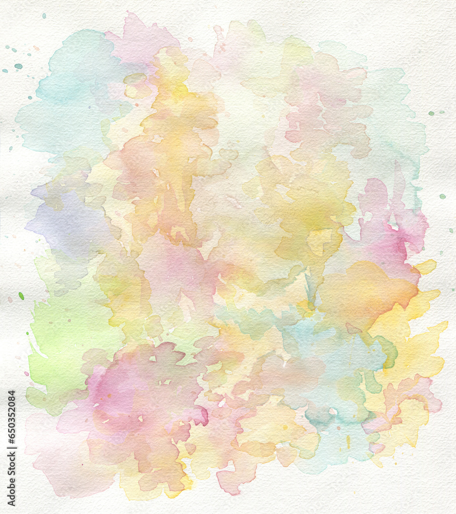 Ink watercolor hand drawn smoke flow stain blot on wet paper grain texture background. Pastel colors.