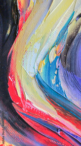 Closeup of a painting by oil and palette knife. Highly-textured, high quality details. Fragment of multicolored texture painting. Abstract art background. oil on canvas. Rough brushstrokes of paint.