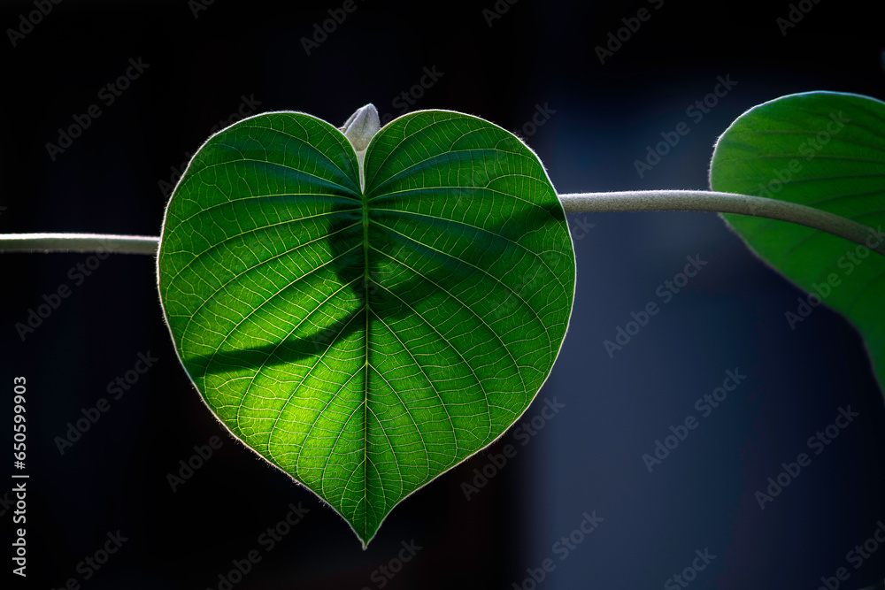 heart shape leaf of elephant creeper plant.
