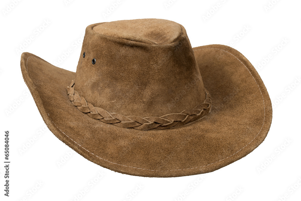 Brown cowboy leather hat isolated over white with clipping path.