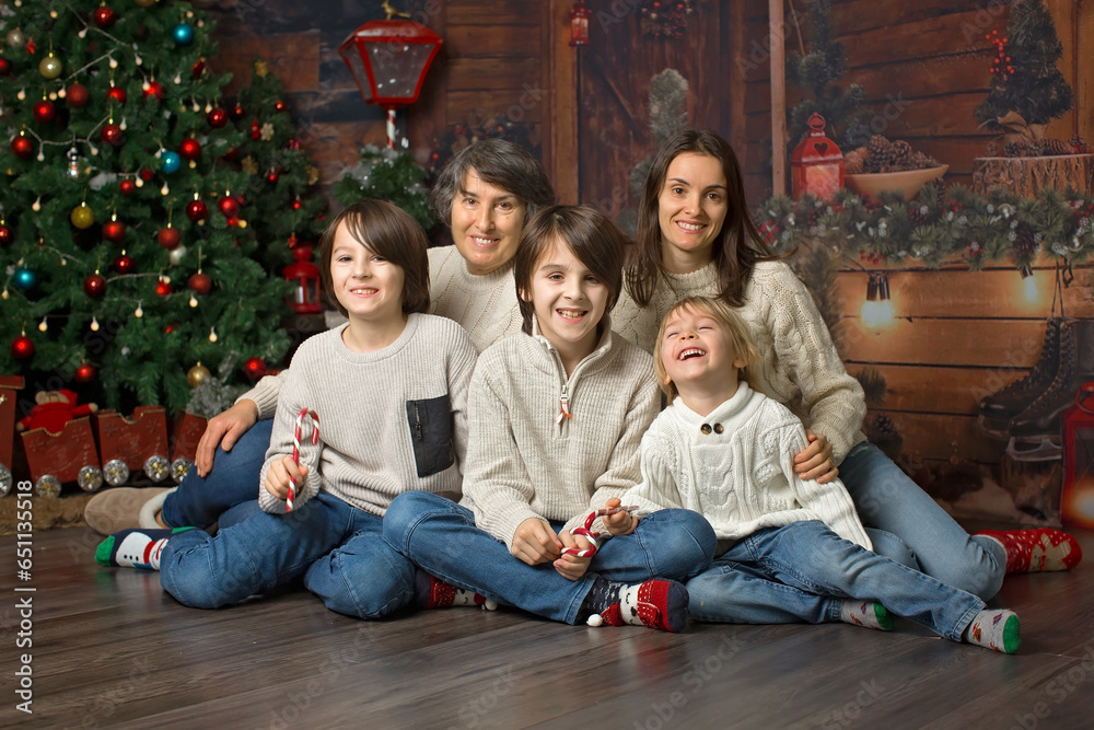 Happy family, posing for portrait for Christmas, three generations