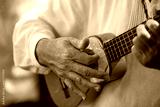 Close-up of a Canarian man playing a traditional timple (small guitar)