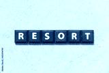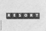 Tile alphabet letter in word resort on wood background