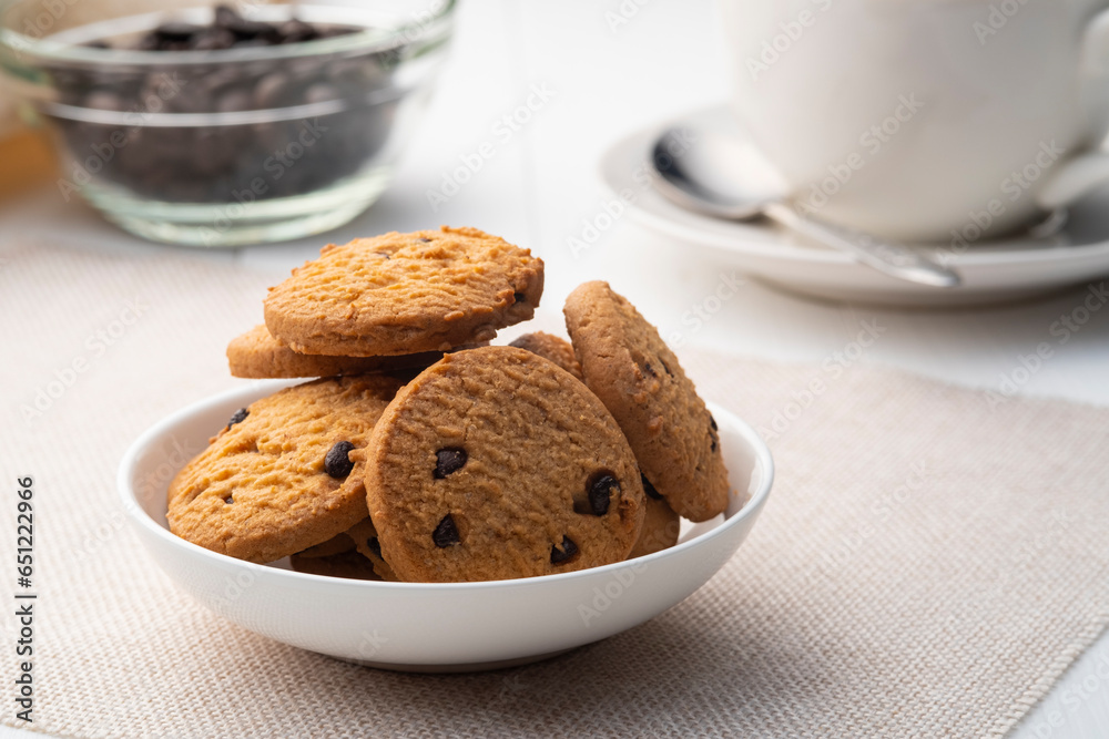 Pile of Chocolate Chip Cookies on a White Plate