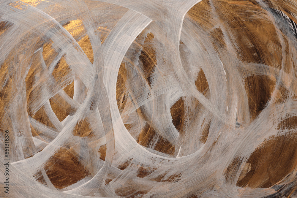 White and gold bronze ink smear brush stroke stain blot glow texture wall background.