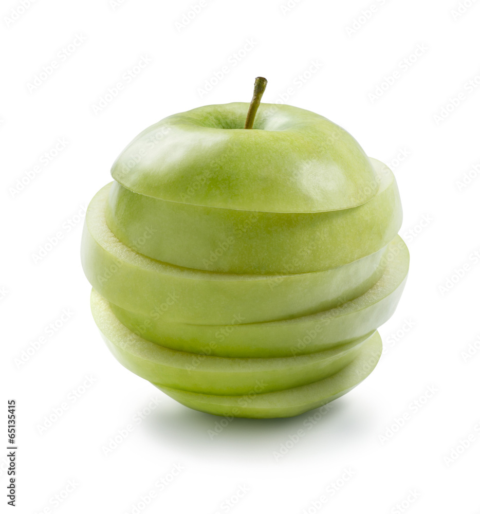 Sliced green cooking apple on white background isolated