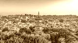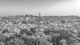 Aerial photography of the East and West Twin Towers of Kaiyuan Temple and West Street of Quanzhou City, Quanzhou City, Fujian Province, China