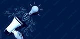 Attention and announcement concept with an idea light bulb flying to the sky like a rocket - Flat lay