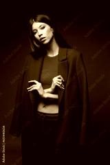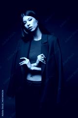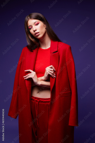 Fashion asian female model in red coat.