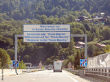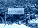 road sign of the road that leads from France to Italy passing under Mont Blanc