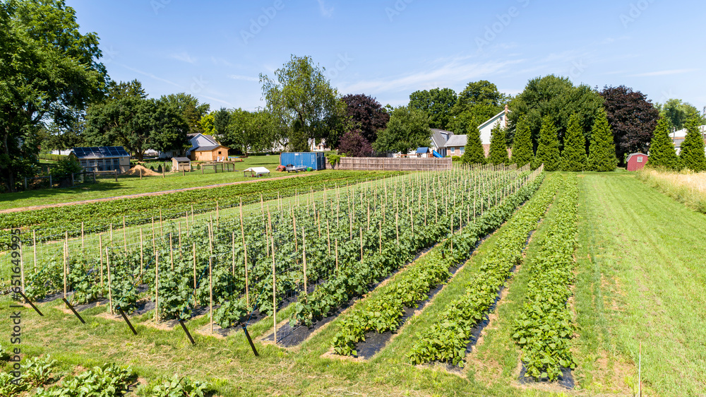 An Aerial View of a Large Home Garden, With an Assortment on Vegetables Growing, at Different Stages, on a Sunny Summer Day