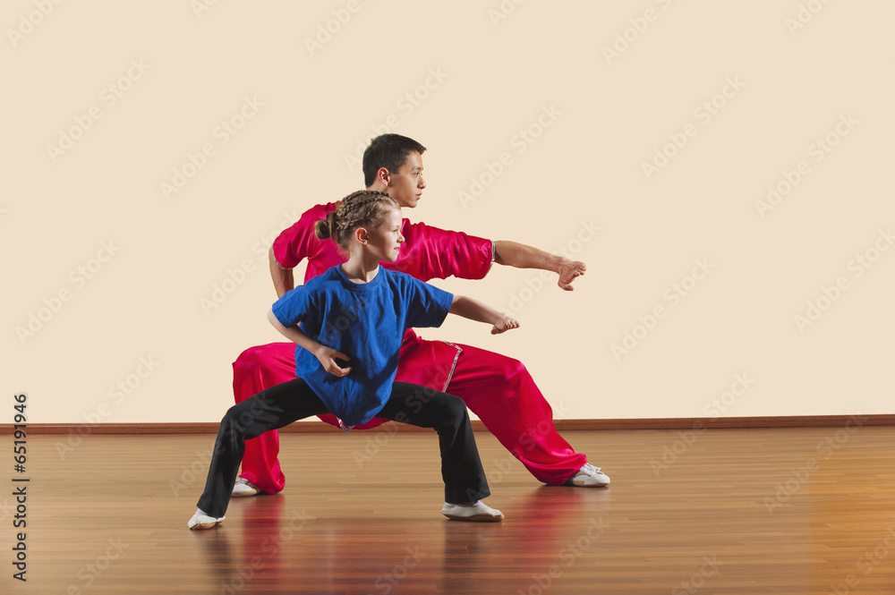 Kung Fu,Changquan,Mabu anzhang,Lange Faust Style,Kung Fu Lehrer und Mädchen ( 6-7)