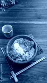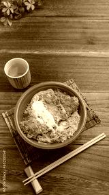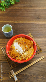 日本の料理|使い捨て容器に入ったテイクアウトのカツ丼 イメージ
