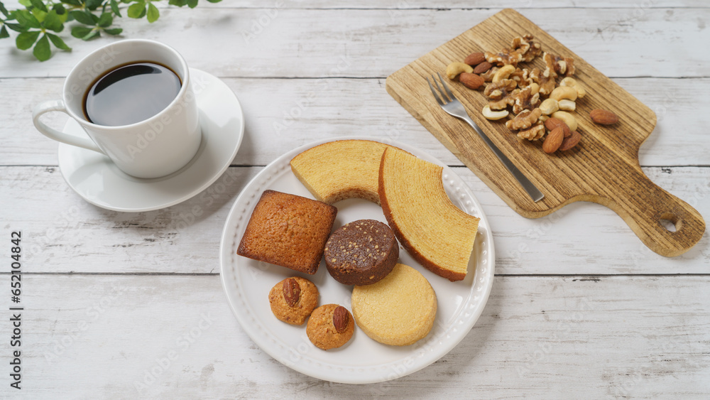 珈琲とお菓子|バームクーヘン・フィナンシェ・クッキーとミックスナッツ