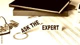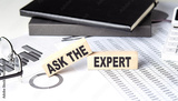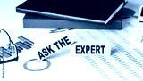 ASK THE EXPERT - text on a wooden block with chart and notebook