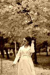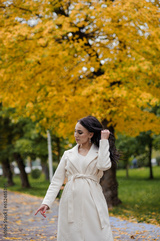 Girl in a white coat in an autumn park