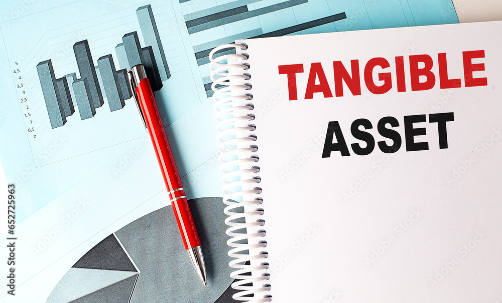 TANGIBLE ASSET text on a notebook with pen on a chart background