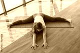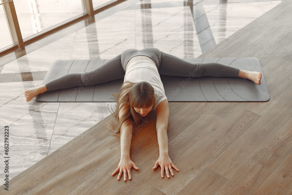 A beautiful girl is engaged in a yoga studio
