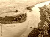 Dismal River meandering through Nebraska Sandhills at Nebraska National Forest, aerial view of late summer scenery