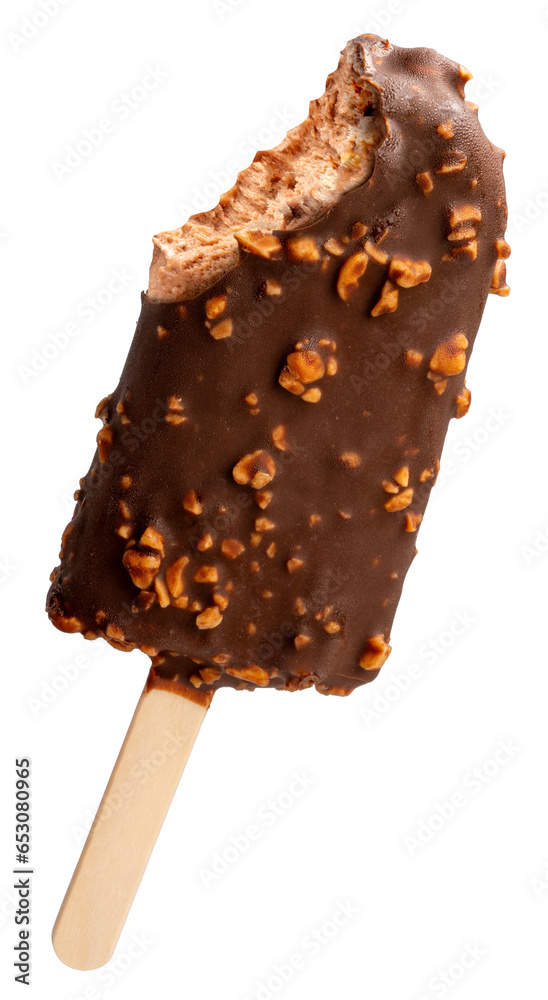 Chocolate and Almond ice cream isolated on white background, Thick Cracking Chocolate and Almond ice cream on white PNG File.