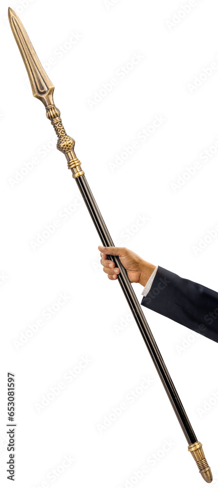 Businessman hand's holding spear or javelin isolated on white background, Sliver spear with long blade on White Background PNG File.