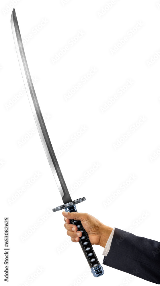 Samurai Sword or Rapier isolated on white background, Sliver Samurai Sword with long blade on White Background PNG File.