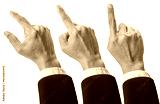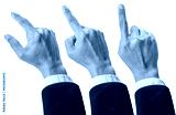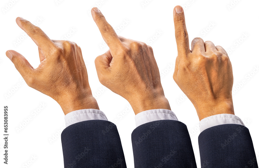 Businessman hand's point or touch white screen isolated on white background, Businessman hand using finger to point or touch on White Background PNG File.