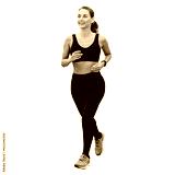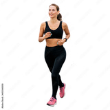 A full-length woman Sports a strong man jumps, motivation and health. Runner workout warm-up in sportswear. Interval training, jogging.