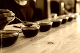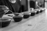 Coffee beans roasting process. the process of cupping black espresso Americano coffee which has gone through roasting, quality control and brewing processes